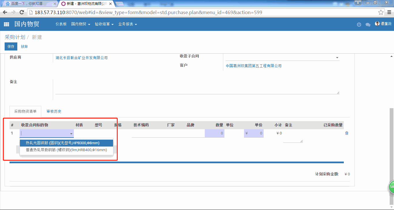 在录入采购计划采购物资清单时没有找到我需要录入物资,如图。
